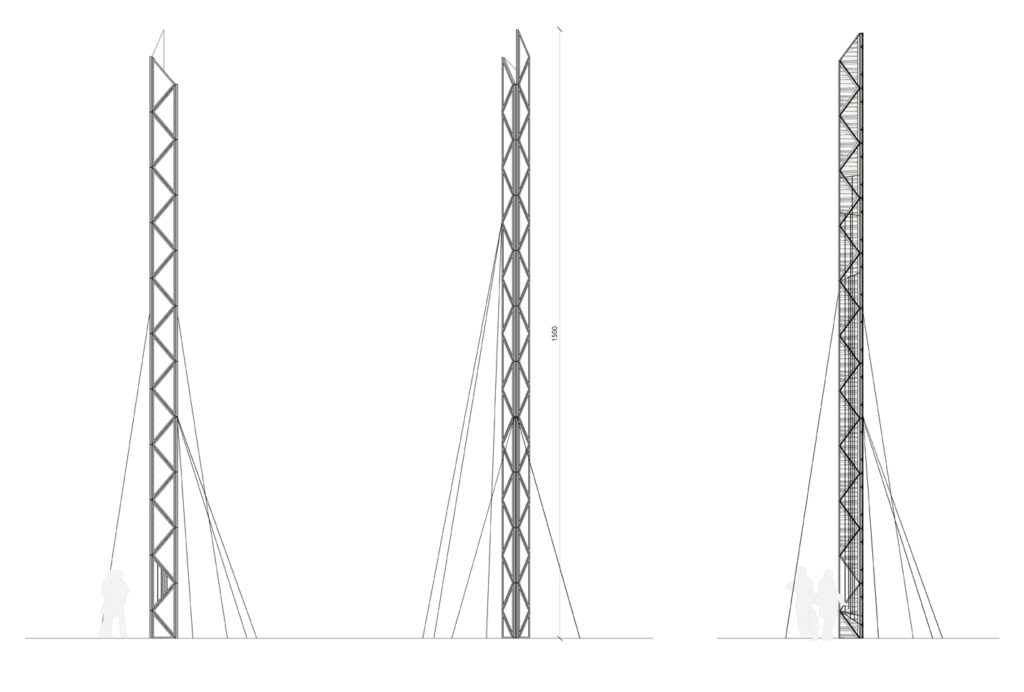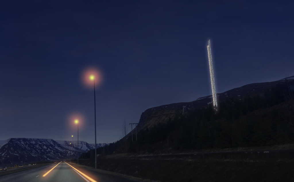 In the celebration of the township of Mosfellsbær 30’th anniversary an open competition. The competition brief was to come up with a concept of a monument with the town’s three main entrance routes. The proposal was to celebrate the area’s history that is the local wool production and contemporary music scene – but the internationally renowned band Sigur Rós was formed in Mosfellsbær. The structure is simple, similar to the technique used when constructing radio masts. It would though be glazed and lined with raw wool creating pattern in the structure and lighten up internally. The structure would have strings on which pedestrians can experiment with sounds as a celebration to the music heritage in the town.