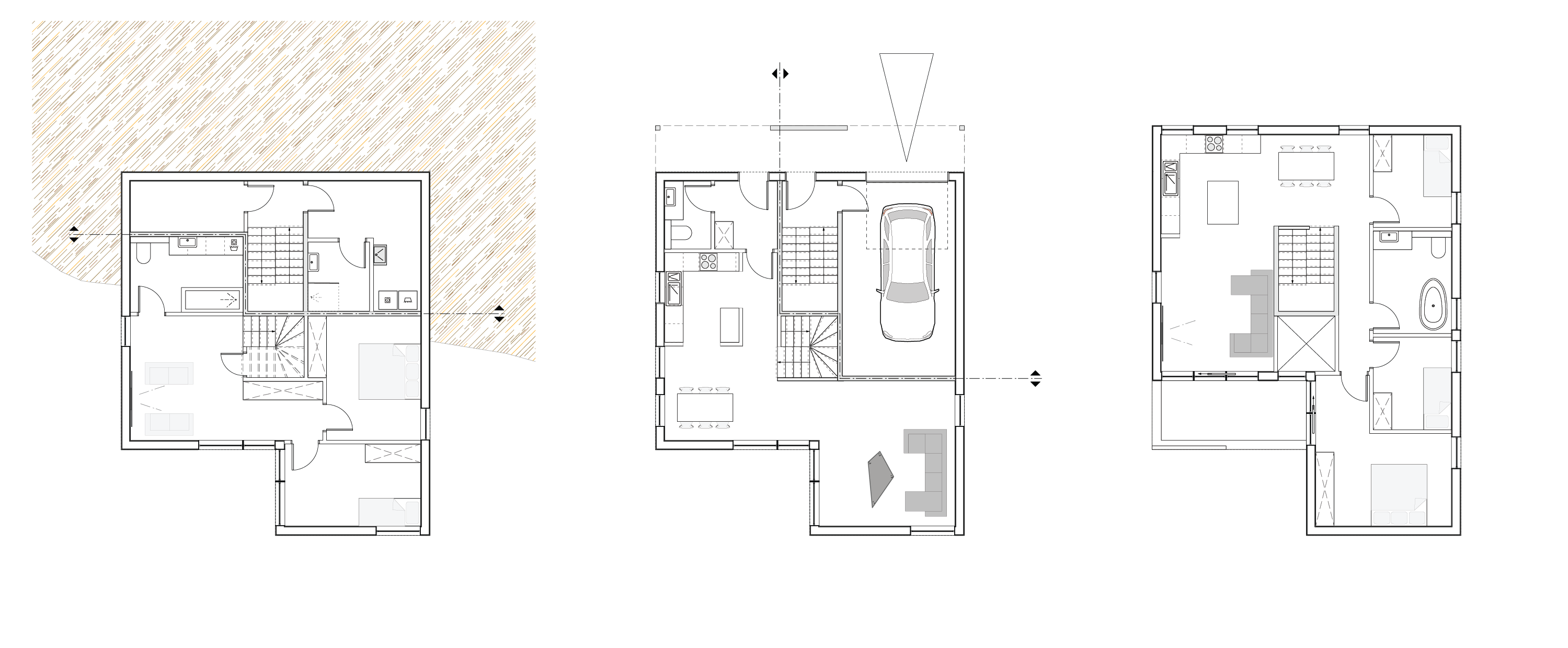 The masterplan’s brief suggests that the building should be two storeys high, but where there is an opportunity it is allowed to have a basement level, as in this case. As designing the internal layout of the building, the Principe was pretty much the same. As in The White and Red Houses the internal plan is divided between different activities, as the sleeping rooms and more quiet activity is placed on ground floor while more action is on upper level. Upstairs the cooking takes place, watching TV, play and games and social mingling such as cocktail parties.